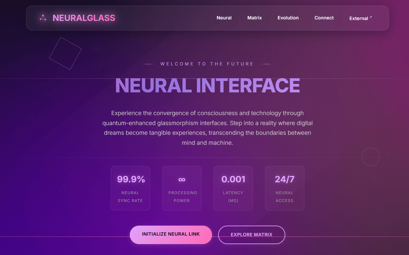 NeuralGlass is a premium futuristic website template designed for AI, technology, SaaS, and innovation-driven projects.